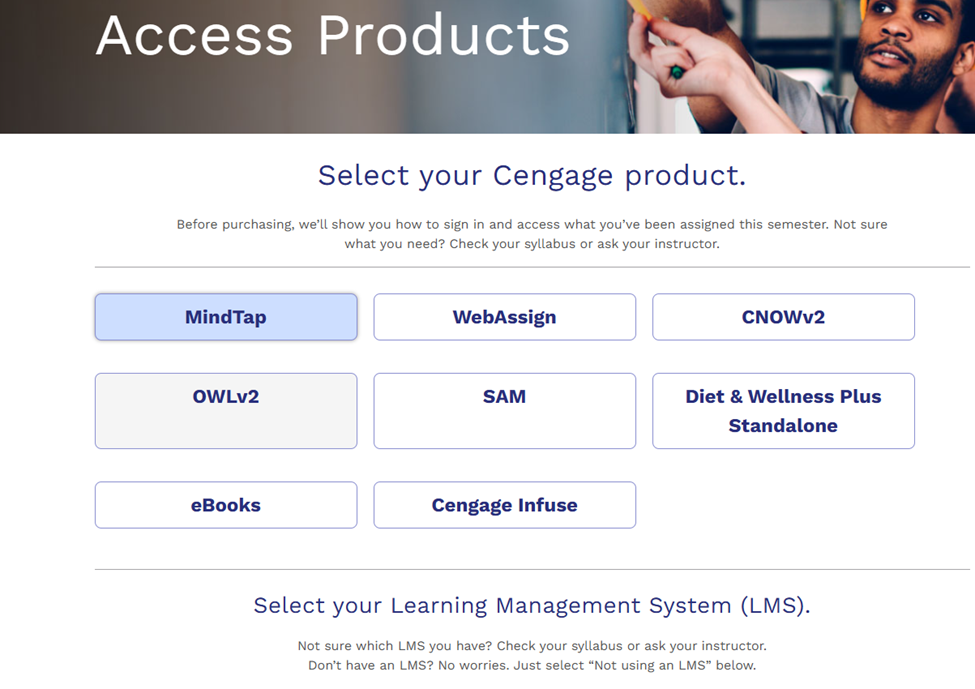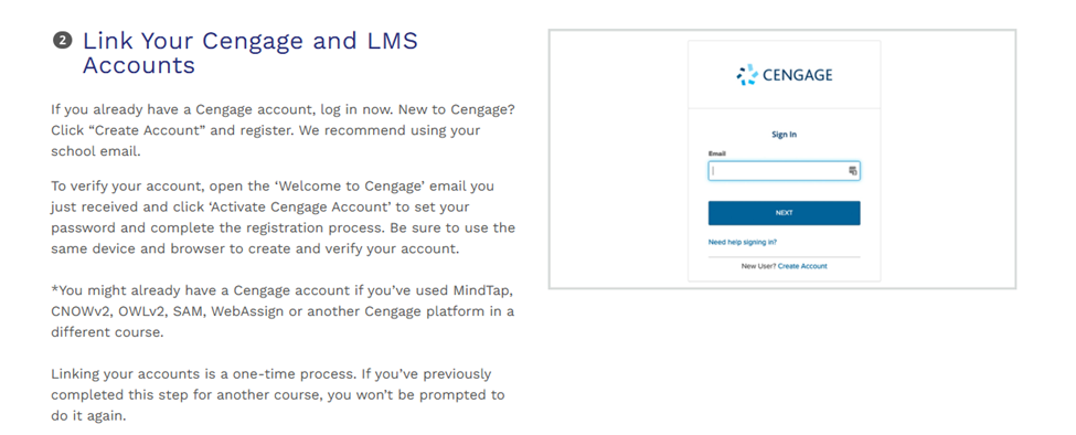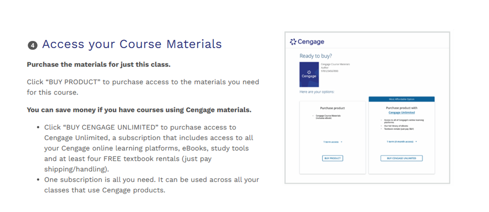 On that page, directly below the code, you'll usually find a button that lets you access the company’s website. For Cengage, you’ll need to create an account. It is strongly recommended that students provide their Clark State credentials for this account.