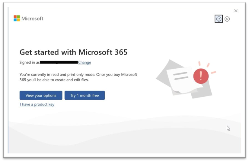 The computer may have a free trial of Office included or it may ask you to purchase it the first time you open one of the programs. You may see a box similar to this, which case you can click Change and sign in with your Clark State email.